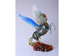 广州琉璃厂古法琉璃飞马之结合故事,神话形象古法琉璃飞马,伊索比亚的神话故事之一。当英仙座配修士(Perseus)斩杀女妖梅杜莎(Medusa)的首级时,血从梅杜莎颈部流出到海中和海马混合,于是一只 长有翅膀的琉璃飞马佩加速斯便一跃而出。海王曾被认为是佩加速斯的父亲。传说Athena曾补捉到飞马并曾带它到海林肯(Helicon)山,属于谬赛斯(Muses)的山,琉璃飞马在飞跃时佩加速斯的蹄踢到了山一下,从此著名的 Hippocrene泉便开始涌了出来,那时传说Hippocrene是所有诗人墨客的灵感来源。后来佩加速斯成为希腊港市,哥林斯的年轻勇士贝雷罗明(Bellerophon)的好朋友,借著佩加速斯的帮助,贝雷罗明完成了刺杀一 只吐火的可怕怪物凯米拉(Chimera,狮头、羊身、龙尾)的任务及其他伟业,最后贝雷罗明变得非常傲慢,想骑着琉璃飞马飞过奥林帕斯山去加入众神,宙斯差遣了一只牛蝇去螫佩加速斯,让贝雷罗明从马上摔下致死,而把广州琉璃厂古法琉璃飞马留下养在天庭。