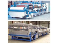 真空带式过滤机是我厂在引进国外同类产品技术基础上,自主开发的一种过滤固液分离设备。该设备采用了固定真空盒,胶带在真空盒上滑动,真空盒与胶带间构成运动密封的结构型式。它能连续自动完成过滤、滤饼洗涤、卸渣、滤布再生等工艺操作,并且母液有与滤饼洗涤液可以分段收集。具有过滤效率高、生产能力大、洗涤效率好,滤饼水分低、操作灵活、维护简单等优点。胶带机经我厂多年改进和完善,产品的技术性能和质量已达到了国际先进水平,已广泛应用于冶金、矿山、化工、电厂湿法烟气脱硫、煤化工、造纸、食品、制药及环保等行业。