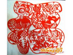 【商品介绍】 彩色剪纸又叫点色剪纸也叫染色剪纸,是在生宣纸剪刻好的成品上,用毛笔点上各种色彩。着色时,要注意一种颜色干后方可再上另一色,以免混淆串色。所以彩色剪纸的制作费时费力,点色剪纸通常应采用阴刻法,便于大块面积留作染色用。点色剪纸色彩强烈,乡土味很浓,有很强的装饰效果。